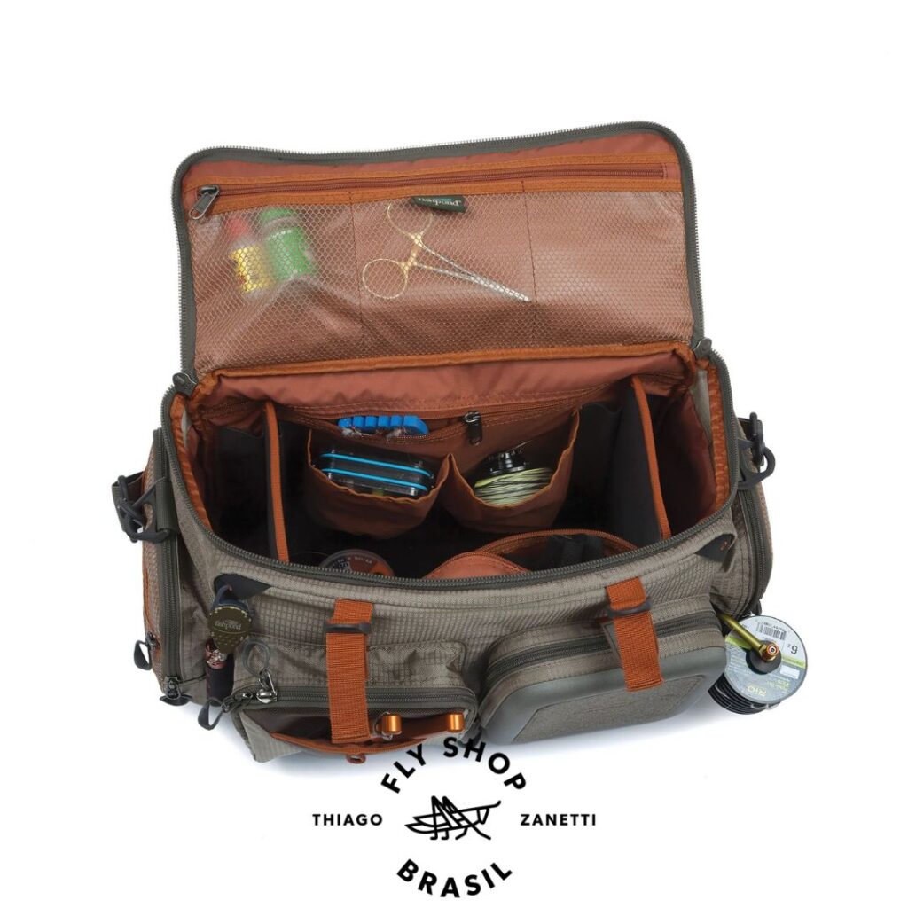No contexto brasileiro, isso se traduz na bag perfeita para organizar todo seu arsenal para viagens de pesca — de expedições ao Pantanal onde você carrega equipamento para semanas, até dias longos nas represas de tucunaré onde acesso rápido faz diferença, de pescarias costeiras de robalo onde condições molhadas e salgadas testam durabilidade, até aventuras na Amazônia atrás de pirarucu onde você não tem luxo de carregar múltiplas bags desorganizadas. Chega de perder tempo procurando aquela mosca específica ou ferramenta crítica no momento que o peixe está atacando sua isca e você precisa trocar rápido. Tudo tem seu lugar estrategicamente pensado, tudo é acessível instantaneamente sem frustração.